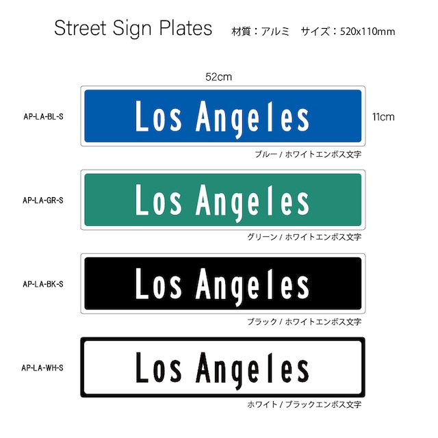 エンボスストリートサインプレート 520x110mm AP-LA-S