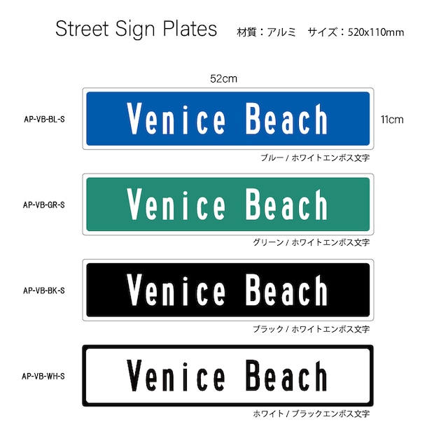 エンボスストリートサインプレート 520x110mm AP-VB-S
