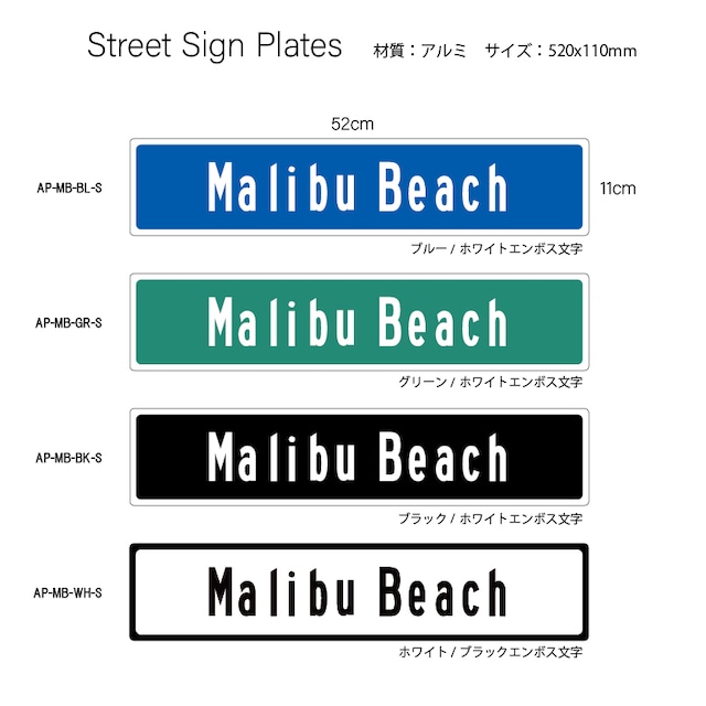 エンボスストリートサインプレート 520x110mm AP-MB-S