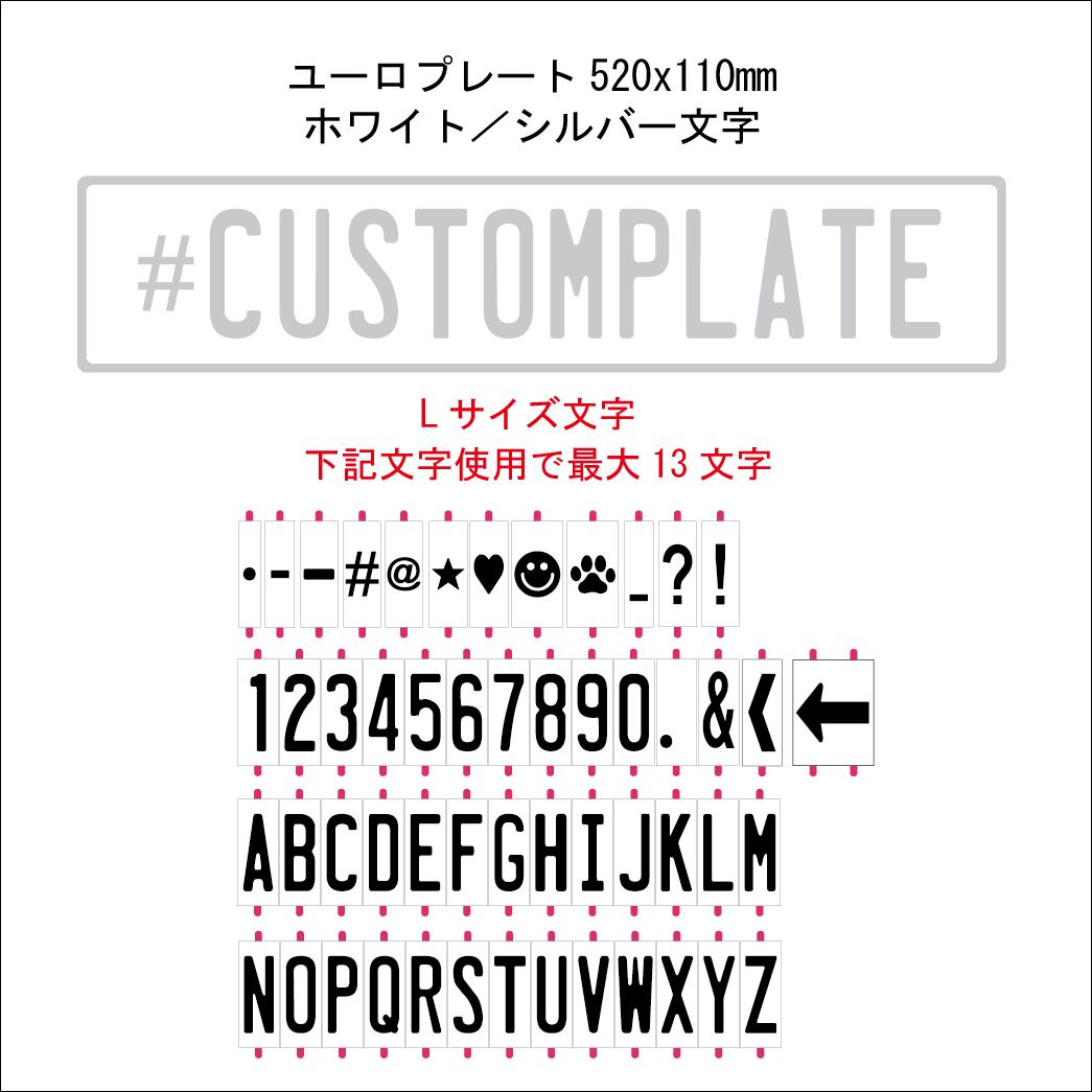 ユーロプレート 最大13文字 Lサイズ文字エンボス「ホワイト/シルバー」