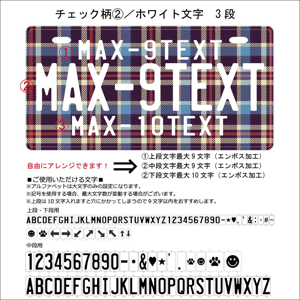 U.S.プレート3段エンボス「チェック柄2」