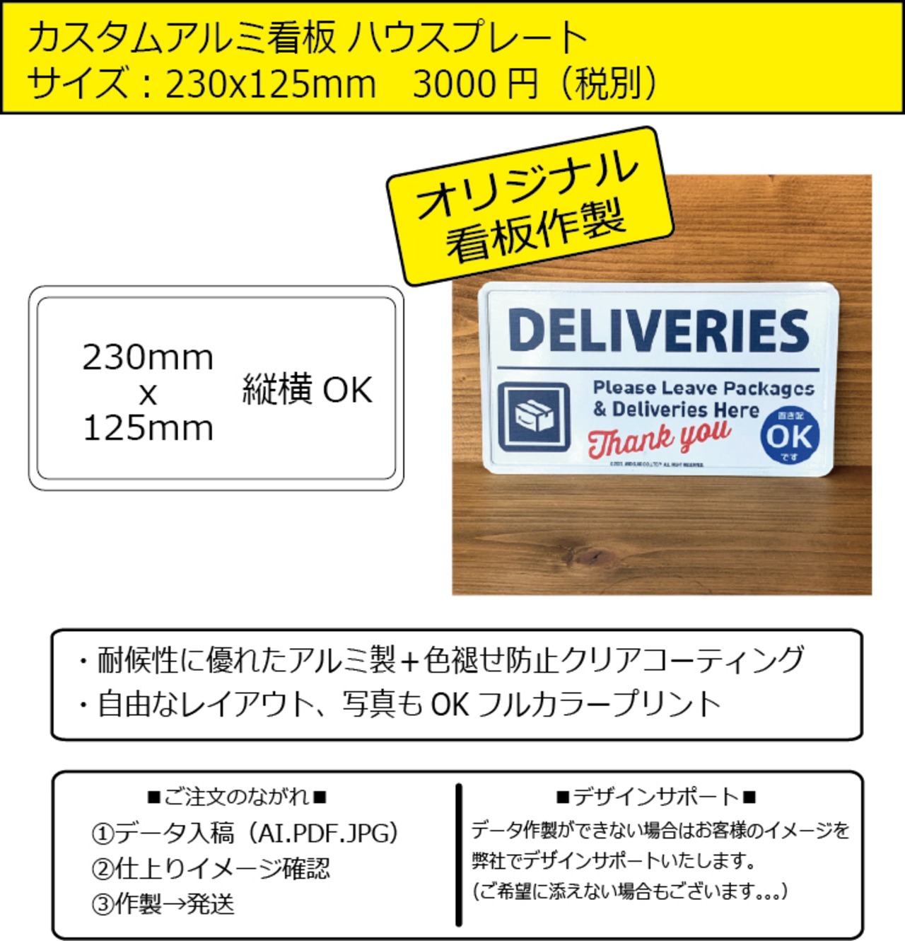 カスタムアルミ看板 ハウスプレート 230x125mm