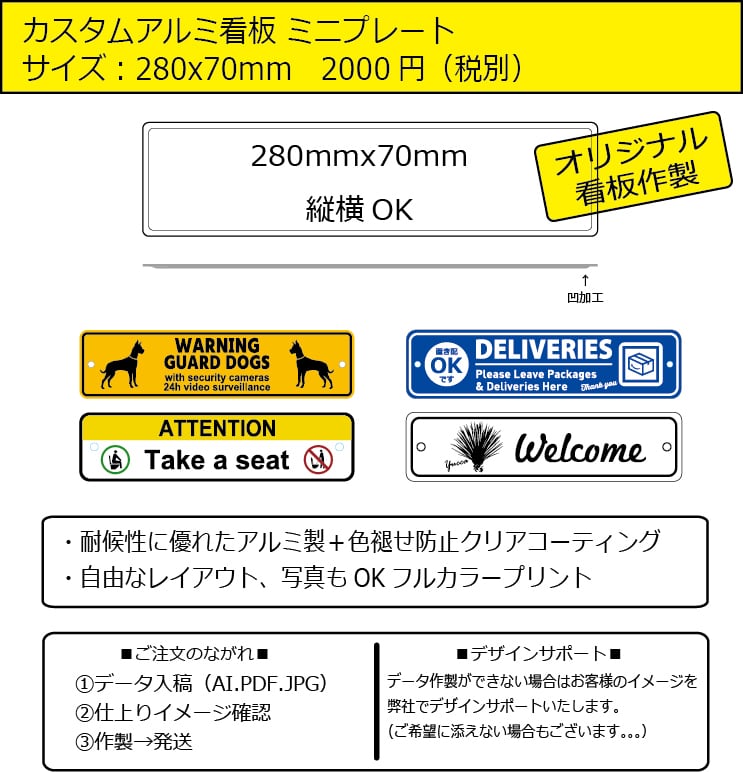 カスタムアルミ看板 ミニプレート 280x70mm