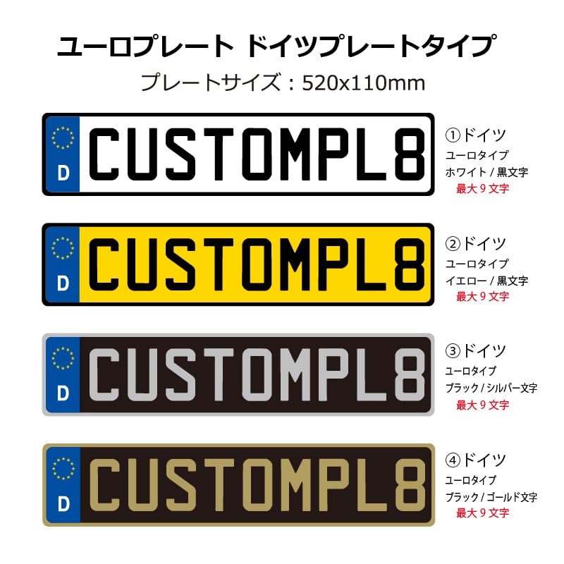 ユーロプレート ドイツユーロタイプ/ 最大9文字 LLサイズ文字エンボス