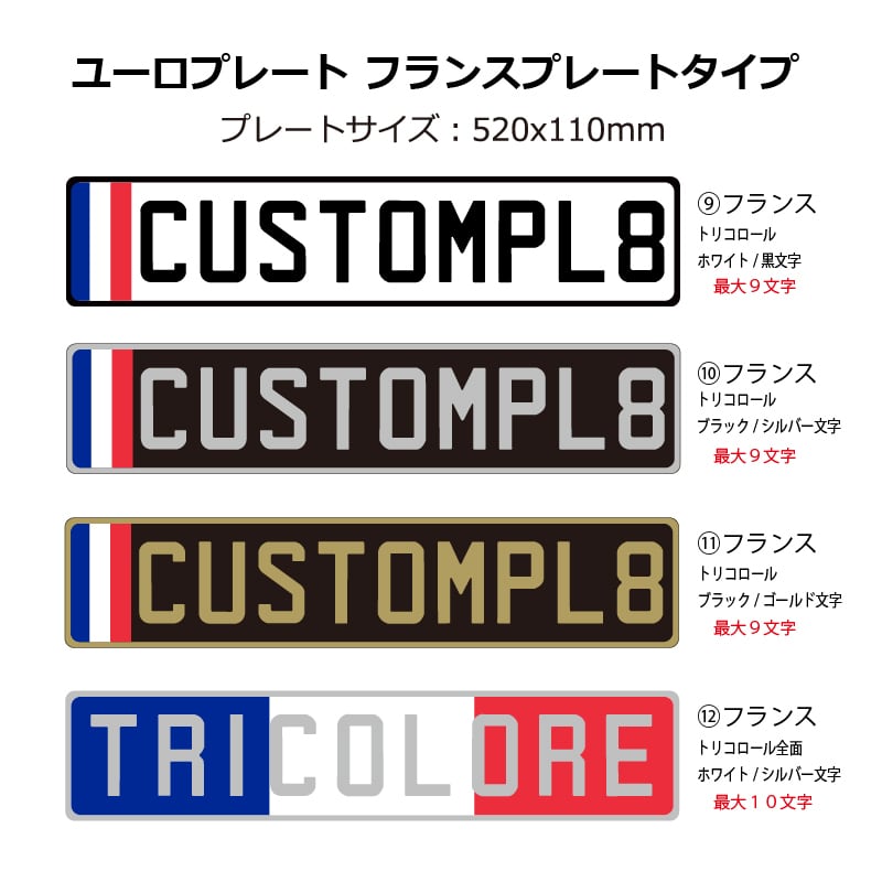 ユーロプレート フランストリコロール/ 最大9~10文字 LLサイズ文字エンボス