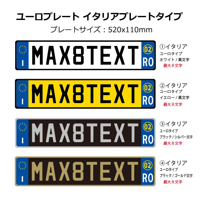 ユーロプレート イタリアユーロタイプ/ 最大8文字 LLサイズ文字エンボス