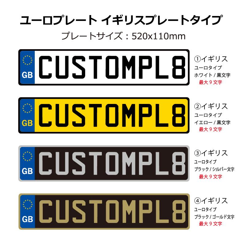 ユーロプレート イギリスユーロタイプ/ 最大9文字 LLサイズ文字エンボス