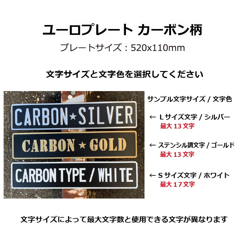 ユーロプレート カーボン柄/文字色3色 ステンシル調エンボス文字 最大13文字
