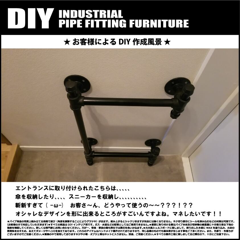 様々なパーツやパイプやウッドシェルフを組み合わせて棚やテーブルなどお好みのインテリアを希望のサイズで作成できます。屋外対応防錆塗装済み鋳鉄製(塗装済みではございますが、ネジ切り部分より全体に錆が発生しますので御了承ください)。重厚なパイプを組み上げることにより非現実的な空間が生み出されます!また全ての商品はDIYインテリア用ですのでガス・水道などの配管としての使用はやめてください。パーツには製品の性質上細かな擦れやヘコミがあります。パーツごとの販売になりますので組み立て工程はお客様になります。パーツに個体差がありネジ込みにくい物がありますが、別途パイプレンチ等をご使用されると組み易くなります。また最後まで締め込まずとも組み上げることは可能です。組み立ての際はくれぐれもご注意ください。