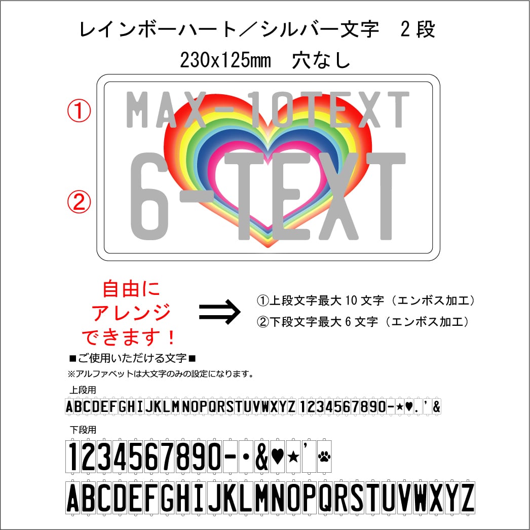 ハウスプレート レインボーハート/シルバー文字 2段エンボス