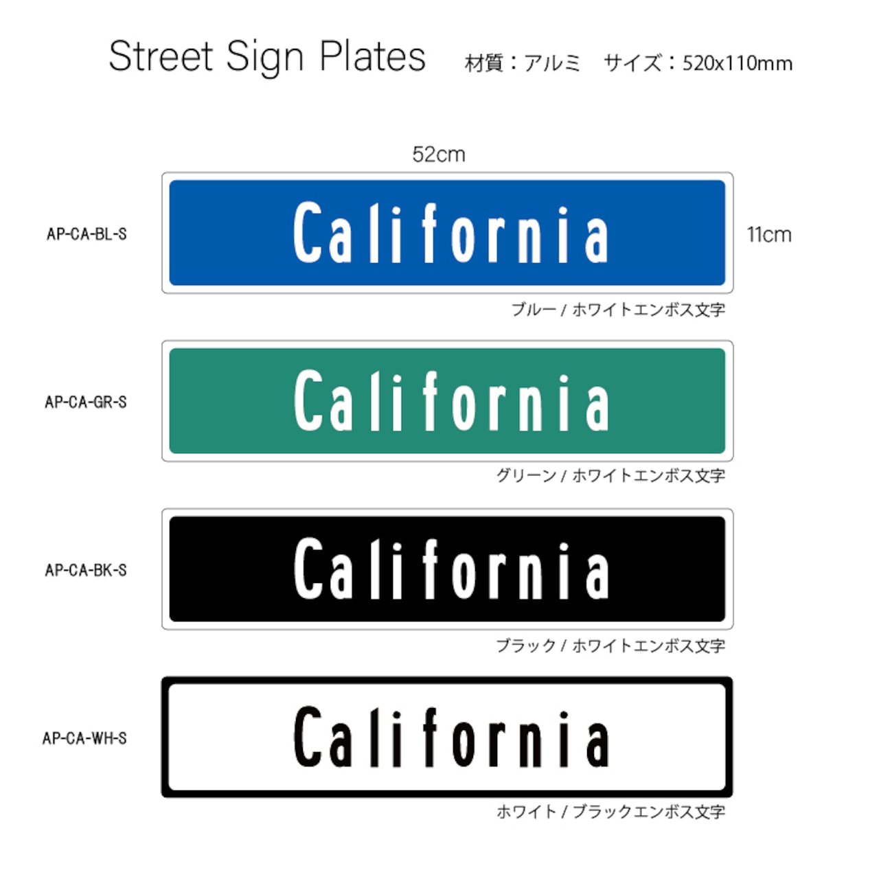 エンボスストリートサインプレート 520x110mm AP-CA-S