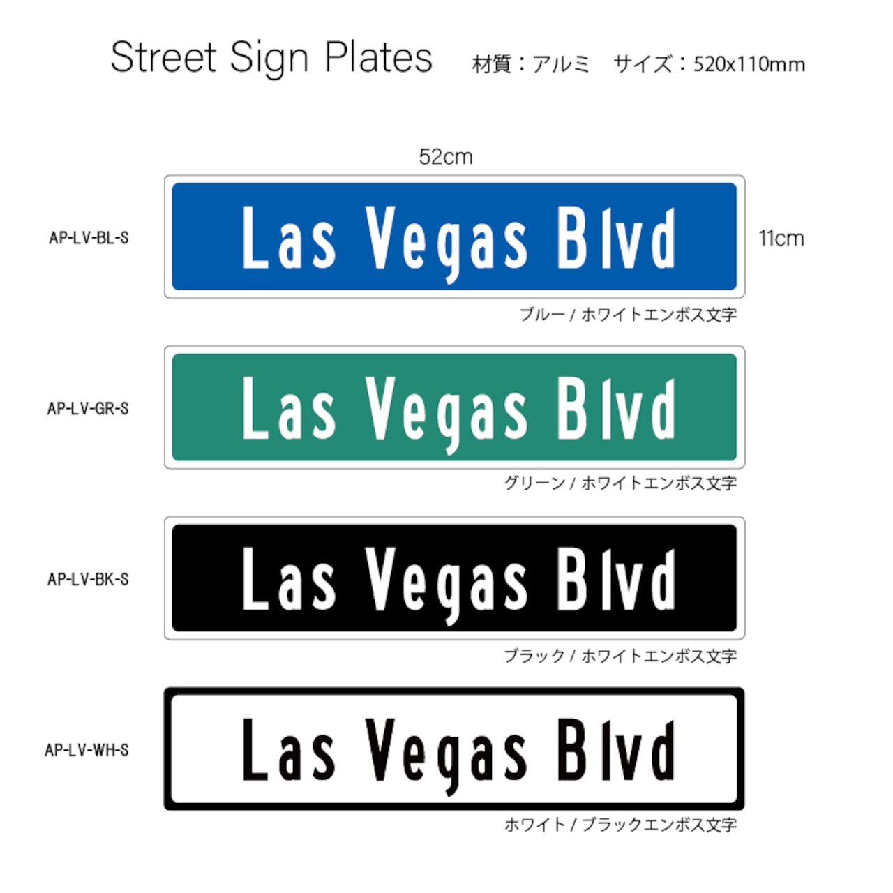 エンボスストリートサインプレート 520x110mm AP-LV-S