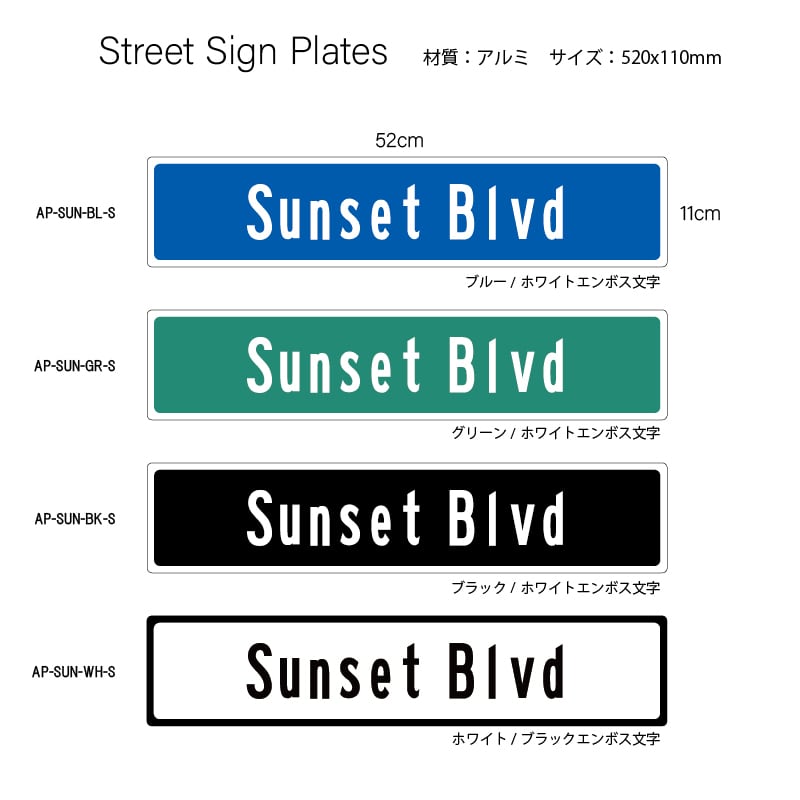エンボスストリートサインプレート 520x110mm AP-SUN-S
