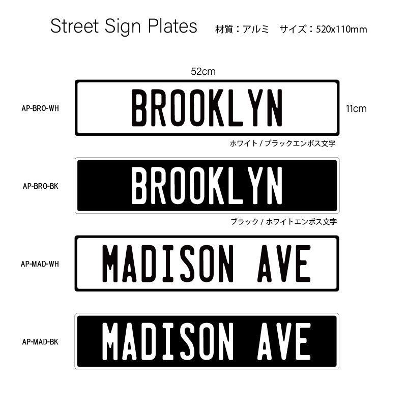 エンボスストリートサインプレート 520x110mm NEW YORK1