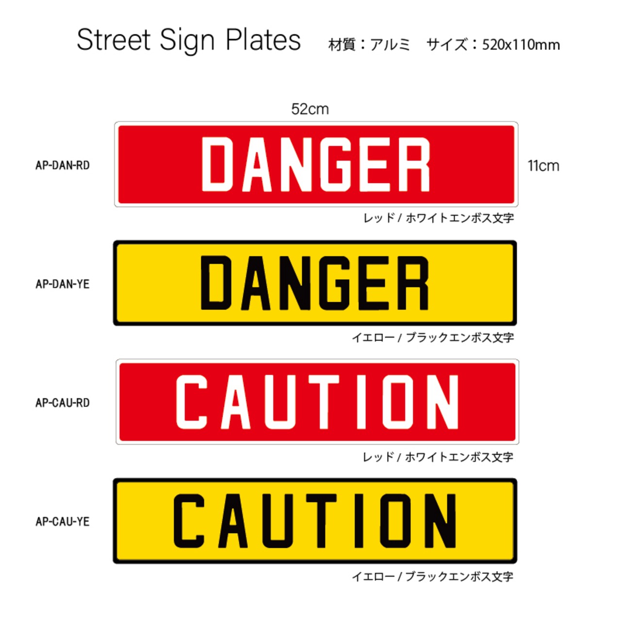 エンボスストリートサインプレート 520x110mm DANGER / CAUTION