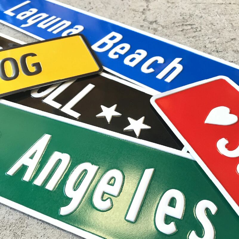 文字は全てエンボス加工、表面はリフレクター(反射)シート加工になっていますので夜間にライトが当たると反射します。(黒プレートは反射しません)