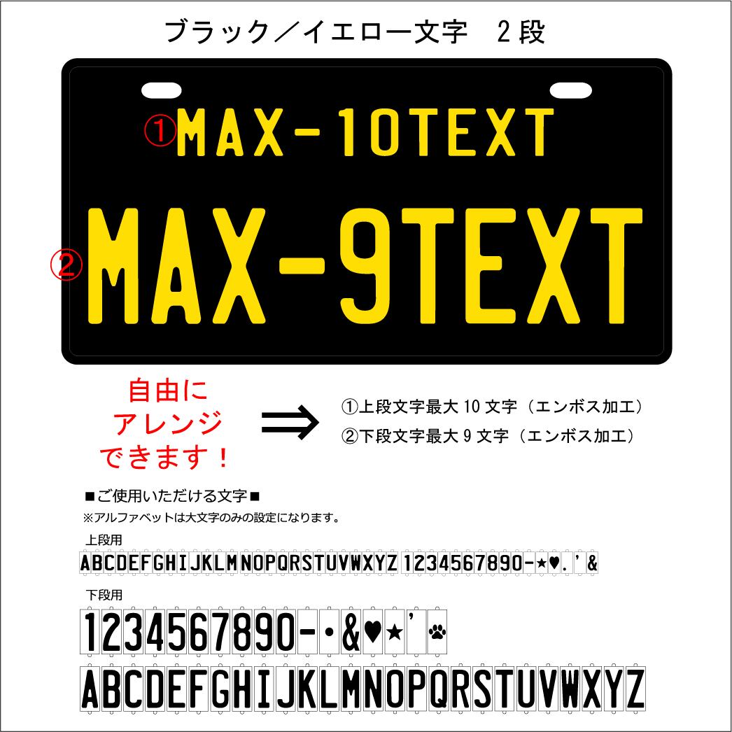 U.S.プレート2段エンボス「ブラック/イエロー」