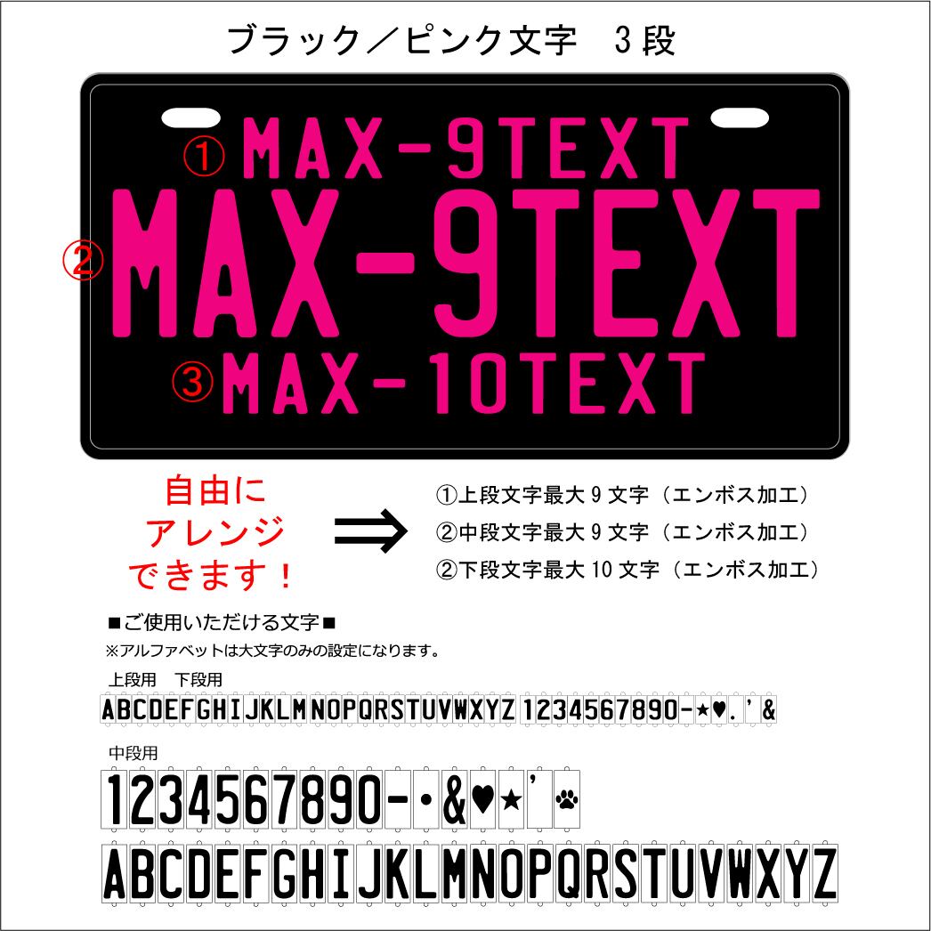 U.S.プレート3段エンボス「ブラック/ピンク」