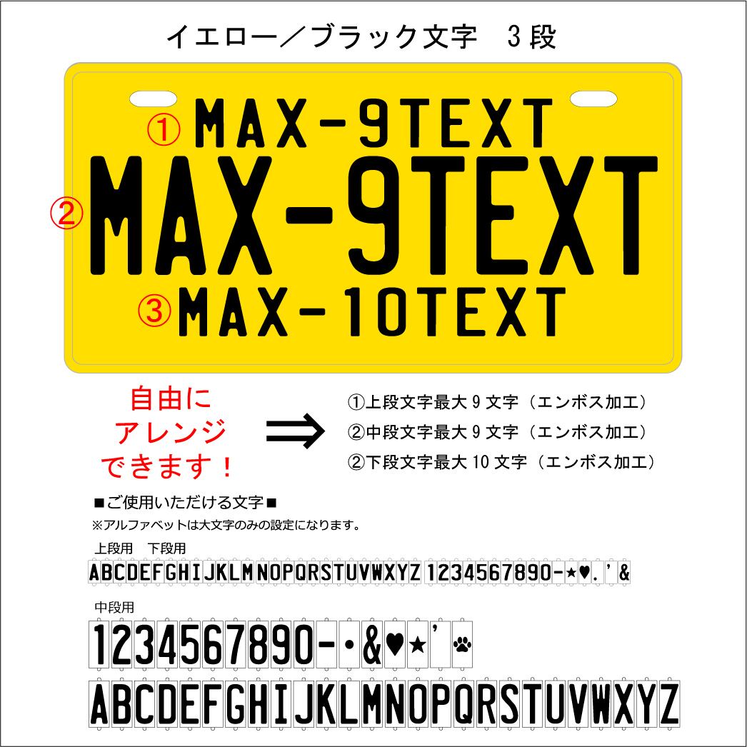 U.S.プレート3段エンボス「イエロー/ブラック」