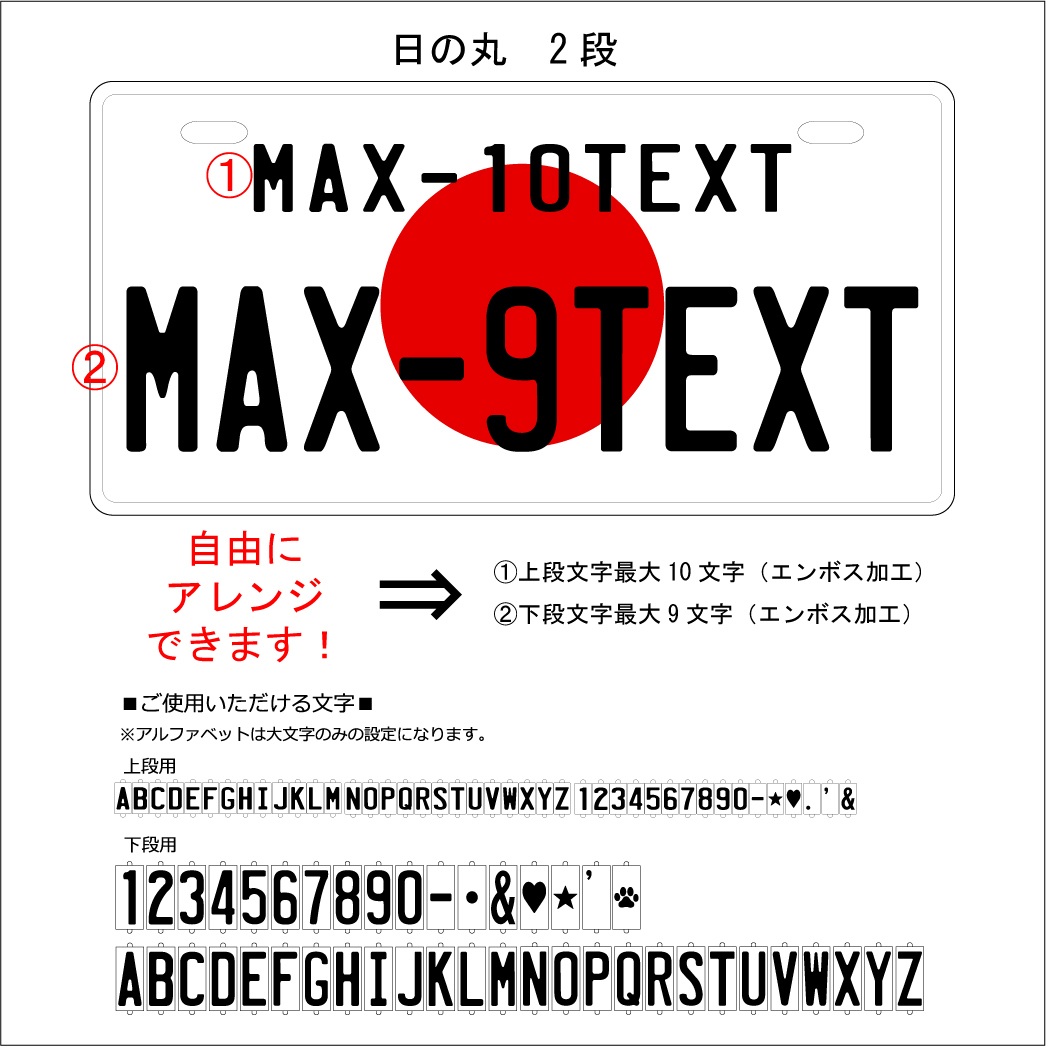U.S.国旗柄プレート2段エンボス「日の丸」