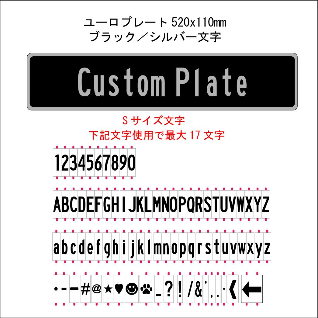 ユーロプレート 最大17文字 Sサイズ文字エンボス「ブラック/シルバー」