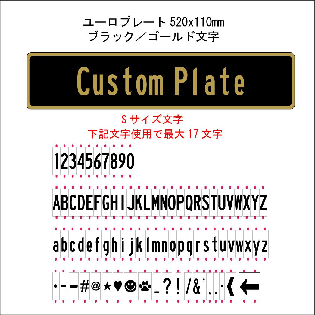 ユーロプレート 最大17文字 Sサイズ文字エンボス「ブラック/ゴールド」