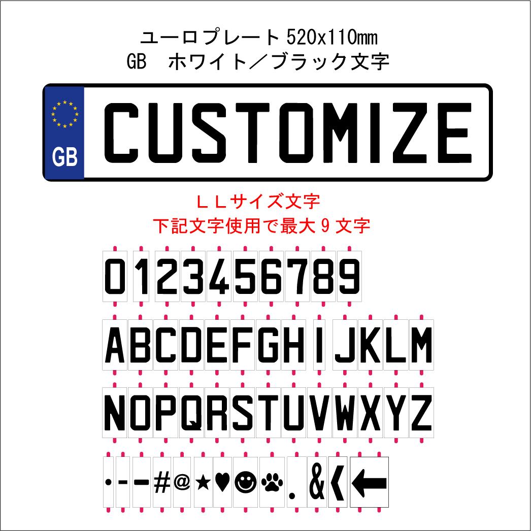 ユーロプレート 最大9文字 LLサイズ文字エンボス「イギリスホワイト/ブラック」