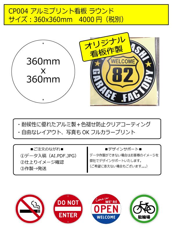 カスタムアルミ看板 CP004 ラウンド 360x360mm