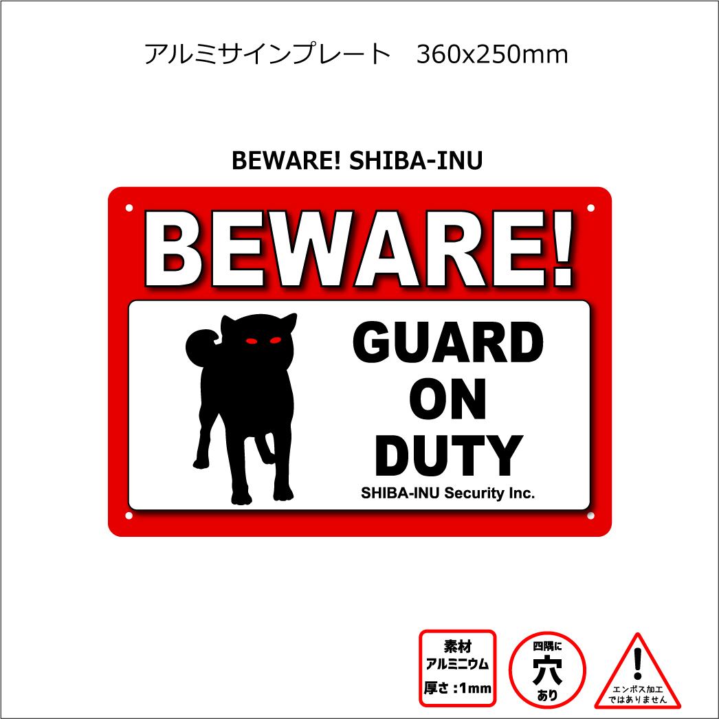 アルミサインプレート 250x360mm 「BEWARE!GUARD ON DUTY 柴犬」
