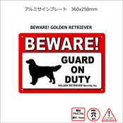 アルミサインプレート 250x360mm 「BEWARE!GUARD ON DUTY ゴールデンレトリバー」