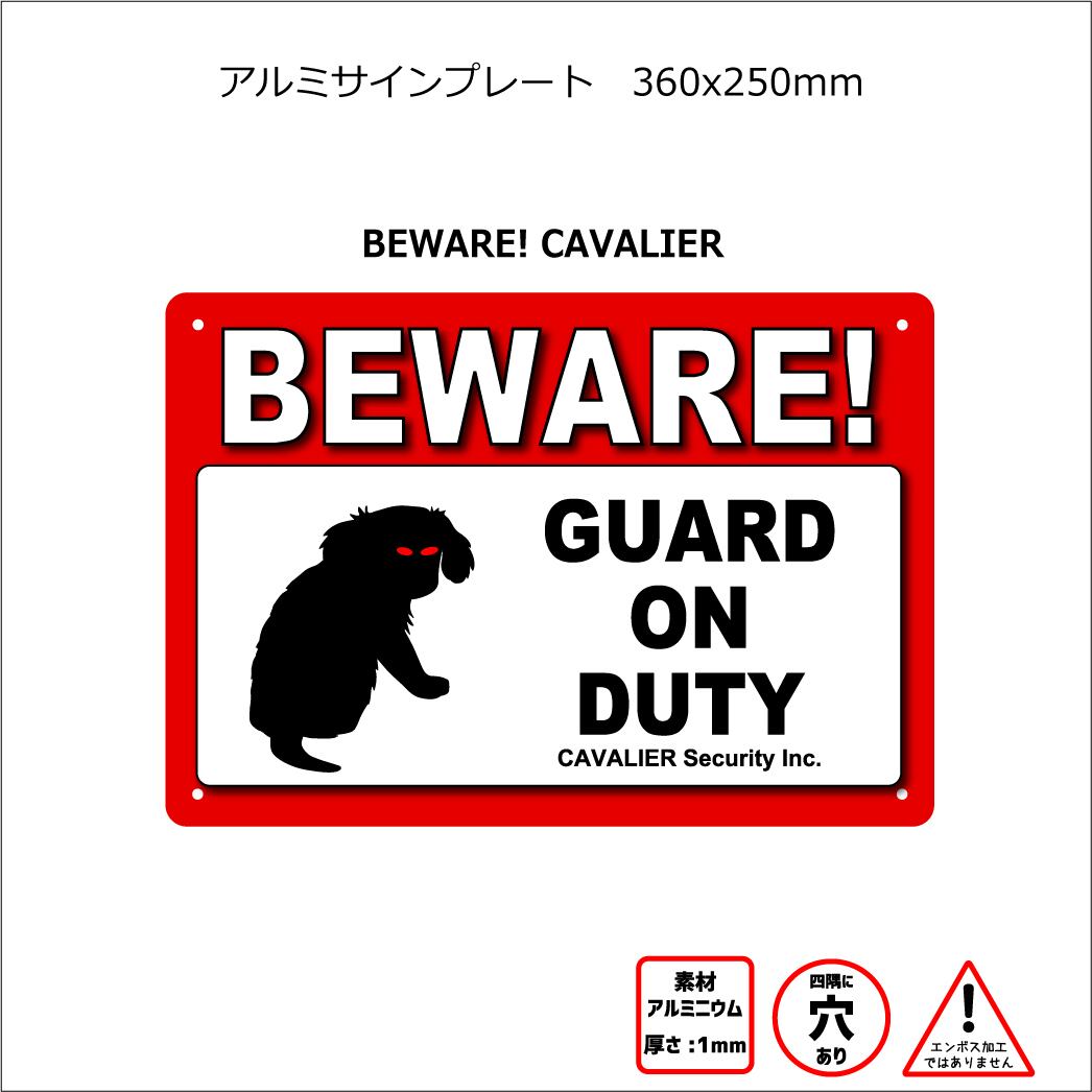 アルミサインプレート 250x360mm 「BEWARE!GUARD ON DUTY キャバリア」