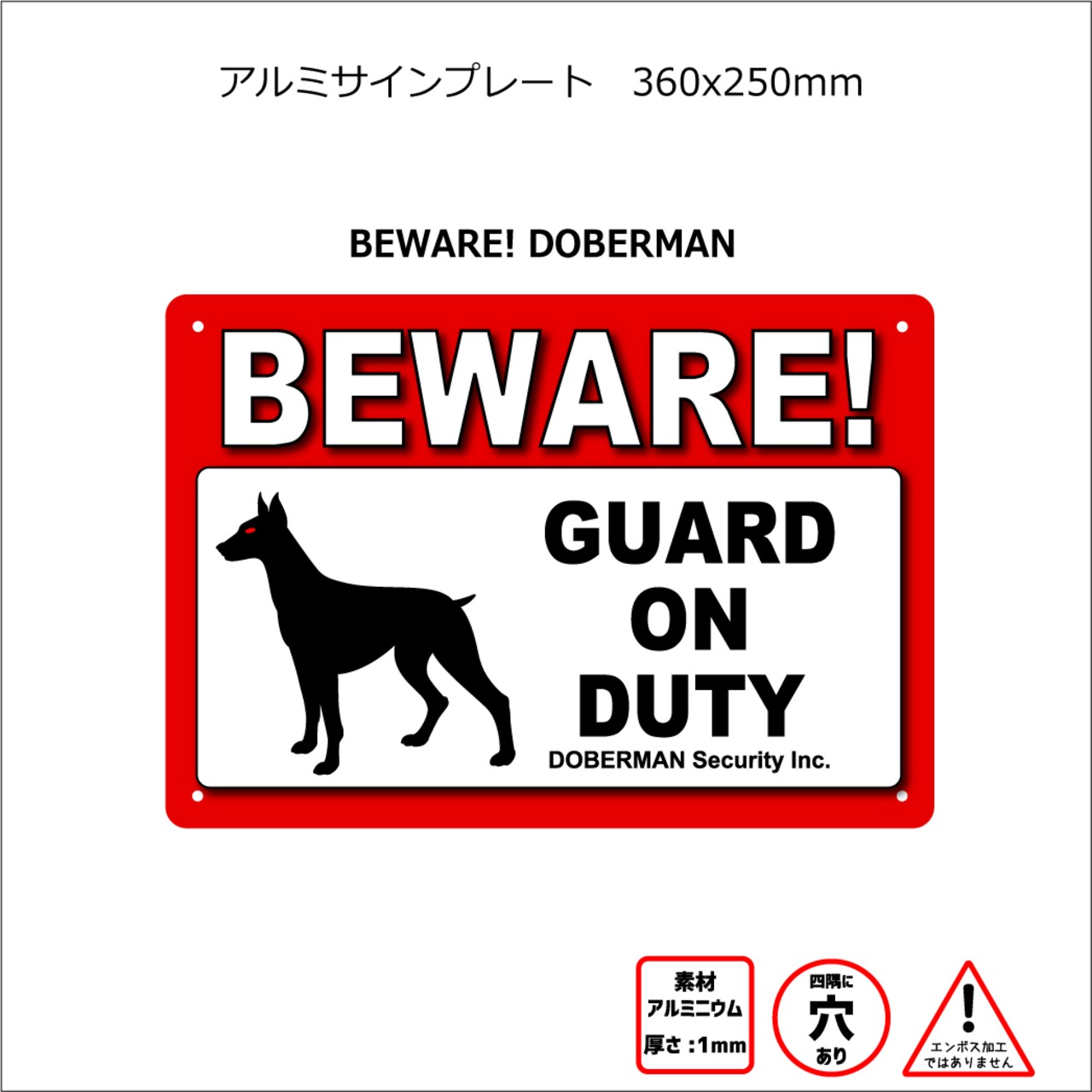 アルミサインプレート 250x360mm 「BEWARE!GUARD ON DUTY ドーベルマン」