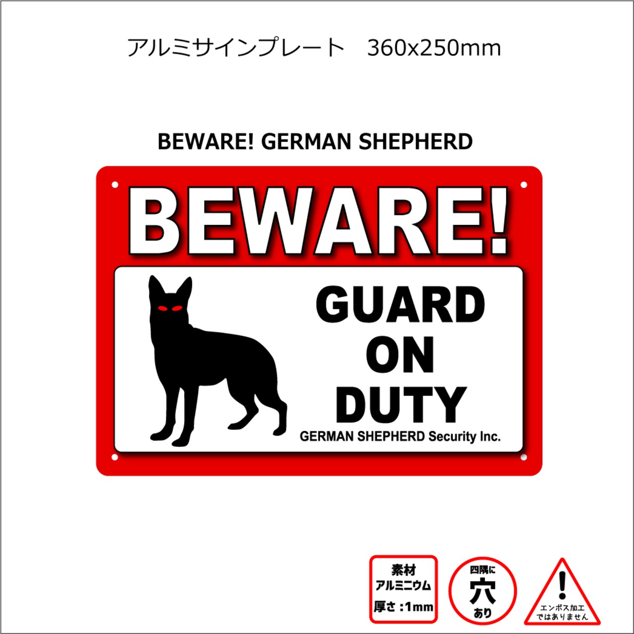 アルミサインプレート 250x360mm 「BEWARE!GUARD ON DUTY シェパード」
