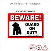 アルミサインプレート 250x360mm 「BEWARE!GUARD ON DUTY トイプードル」